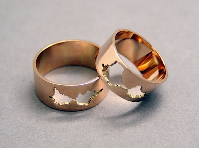 A Japanese artist produced these wedding bands with the soundwaves of the words “I do” etched permanently in gold.